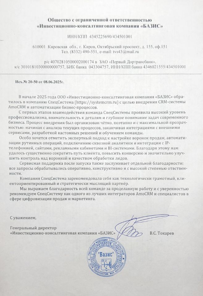 - - Вы получите список рекомендаций по внедрению/доработкам CRM-системы.